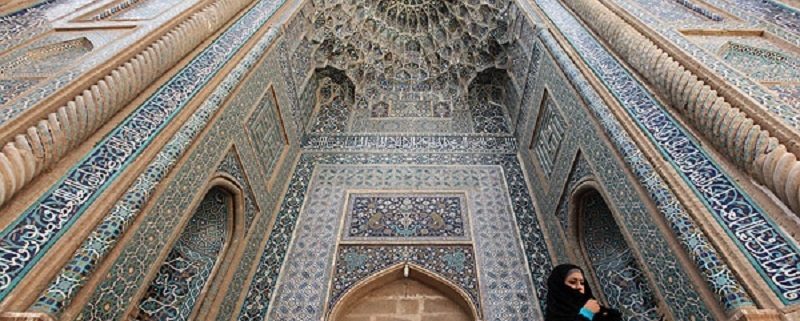 In questo luogo sacro l’architettura s’intreccia con l’amore e la fede per dare vita ad un’opera favolosa che accarezza l’anima e lo sguardo di ogni visitatore. Per poter farsi una idea di questo grande capolavoro basta pensare al fatto che gli artisti hanno impiegato mesi a mettere una accanto all’altra le piastrelleche hanno ricoprono i minareti, la cupola le pareti. La costruzione di questa moschea, risale al 750 del calendario arabo (14esimo secolo cristiano) ed al periodo del governatore Amir Mobarezeddin Mohammad Mozaffar. I testi storici narrano che la moschea venne costruita fuori dalla città di Kerman e che poi e’ stata in pratica inglobata nel tessuto cittadina per via dell’ampliamento di questa. La moschea ha quattro Eyvan o Portici con la parte alta lavorata e piastrelle abbellite con la tecnica del Moarraq e con iscrizioni storiche. Il Mihrab, la nicchia dinanzi alla quale prega la guida della preghiera collettiva, e’ stato realizzato nel marmo ed abbellite con versetti del Corano e piastrelle Moarraq ai lati. Naturalmente poi nei diversi periodi, diverse dinastie hanno cercato di aggiungere bellezze e decorazioni all’edificio originale della moschea.